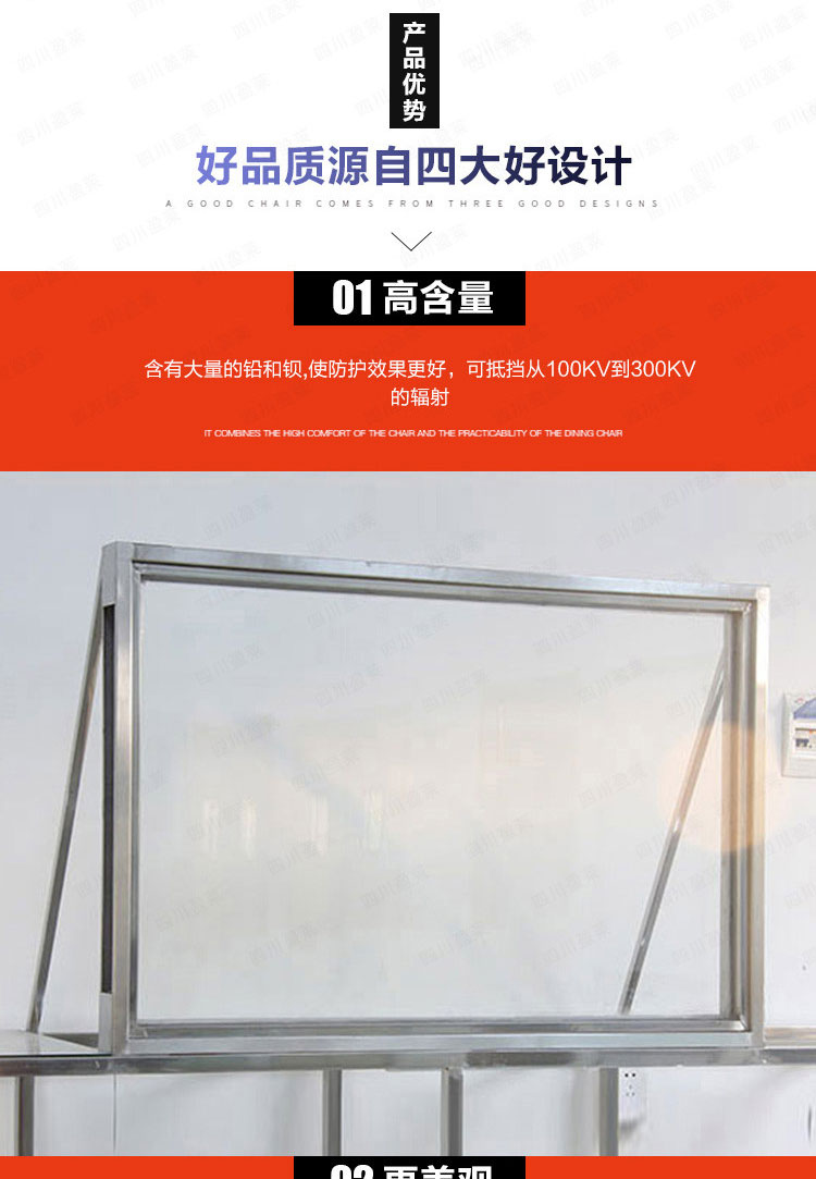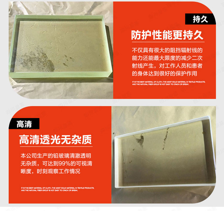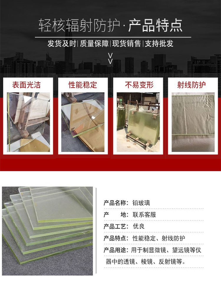铅玻璃的主要性能在光学上是清楚的、透明的防护屏蔽而使用的一种具有规定衰减性的低光学质量的防护玻璃板,其衰减性能每一毫米为0.22mmpb;适用范围可安装于X射线检测和CT扫描的观察窗实验室中的防护窗护目镜的镜片、机场安检的X光屏幕及工业探伤用防护窗